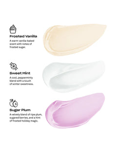 Pamper your pout this season with our limited-edition Lip Mask Minis Trio - featuring three nostalgic, holiday-inspired fragrances that smell like irresistible seasonal treats.