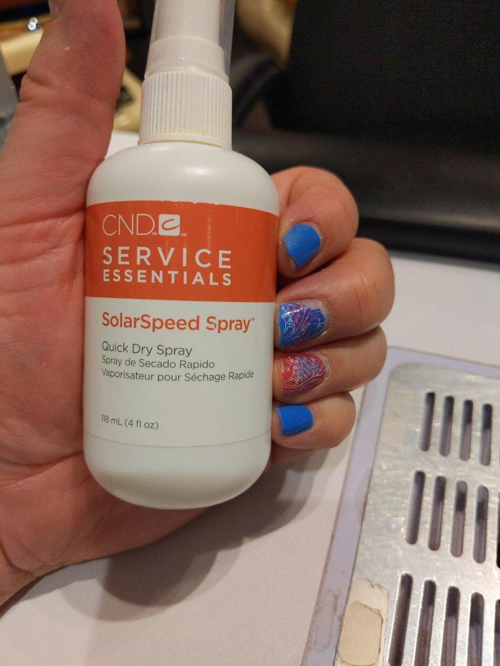 El producto galardonado que conocemos y amamos sigue siendo el mismo, con su fórmula de secado rápido y beneficios hidratantes, pero ahora con una fragancia mejorada. La nueva y placentera mezcla ofrece dulces matices frutales de cereza, frambuesa y fresa, con un toque de jazmín, almendra y vainilla para un toque irresistible. CND™ SolarSpeed Spray™ es un spray de secado ultrarrápido para esmalte de uñas con doble acción: nuestra mezcla patentada de aceites de jojoba, vitamina E, salvado de arroz y almendras dulces hidrata la zona de la uña y la cutícula, mientras que las siliconas de rápida evaporación ayudan a extraer los disolventes de las capas de esmalte para acelerar el proceso de secado.
