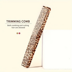Professional leopard print comb designed with wide-tooth and fine-tooth sides for versatile styling and cutting.  Heat-resistant and durable, ideal for both home use and salon professionals to trim, comb, and manage all hair types.