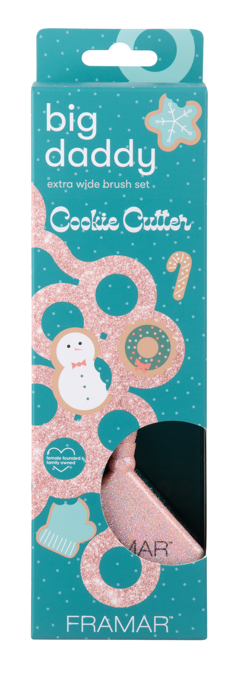 ¡Disfruta de tus antojos de una nueva hornada de favoritos de Framar con nuestra colección de cortadores de galletas que alegran la temporada! Dale un mordisco al rollo esmerilado de 5x11 con dulces ilustraciones de galletas, ¡y seguro que estarás en la lista de los mejores este año! Nuestros elfos hicieron su magia para crear los adornos perfectos para tus calcetines navideños con los cepillos Big Daddy, Detangle Brushes y Baby Klaws brillantes a juego. ¡Descubre la alegría de los cortadores de galletas con estas preciosas herramientas brillantes que son la guinda del pastel!