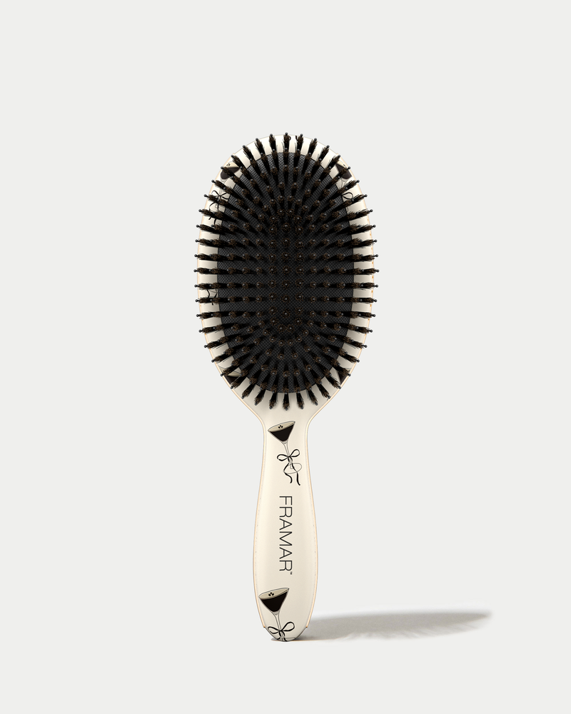 • Using a combination of our signature detangle bristles with real, ethically sourced boar hair bristles, this brush gently stimulates the scalp and smooths hair for an ultra-sleek, shiny finish.