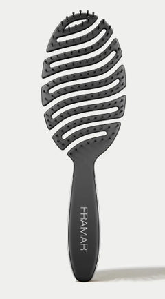 Tell me more: Designed for movement and airflow, the flex brush is heat resistant and perfect for blowouts! Moving with your scalp, this brush glides through the hair with ease, bending when needed while speeding drying time.