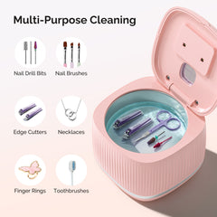 • Versatile for a Wide Range of Items: Perfect for cleaning nail tools such as drill bits and brushes, as well as everyday items like jewelry, foldable glasses, dentures, and toothbrushes.