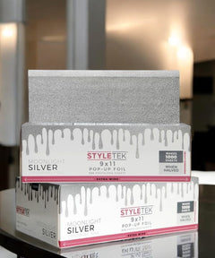 StyleTek “lock in place” foil is designed with a unique dot pattern to lock the heat transfer for better results for hair coloring