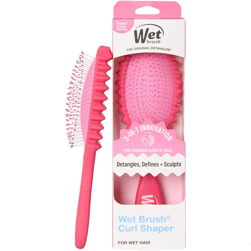 Unlock your curl potential with the Wet Brush Curl Shaper Detangler Brush in vibrant pink. Engineered with IntelliFlex bristles, this brush glides through wet or dry curls without breakage, frizz, or pain. The unique curved design follows your natural curl pattern, enhancing definition while detangling with ease. Perfect for all curl types, from loose waves to tight coils, this brush transforms your styling routine into a gentle, effective experience. Say goodbye to damage and hello to healthier, more beautiful curls.