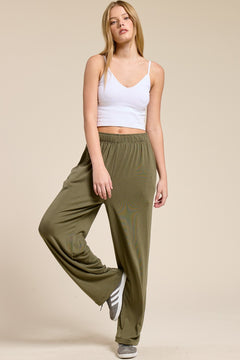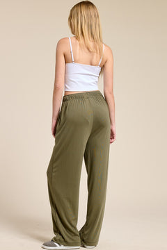 Charlotte Avery Scuba Knit Elastic Waist Pants- Olive