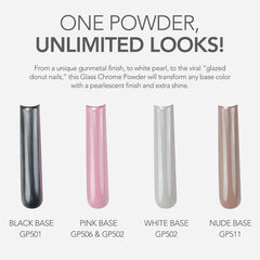 Follow the shine of pure perfection and let your nails gleam with Powder Glass — a crystal-clear, icy chrome powder that reflects light like frosted glass! Sleek, modern, and effortlessly chic, this mesmerizing powder adds a cool, mirror-like brilliance to any base shade for a flawless, glassy finish. Use it with different gel bases to effortlessly create unique finishes, from sultry gunmetal looks to the viral “glazed donut nails” effect. It’s like having multiple powders in one jar!