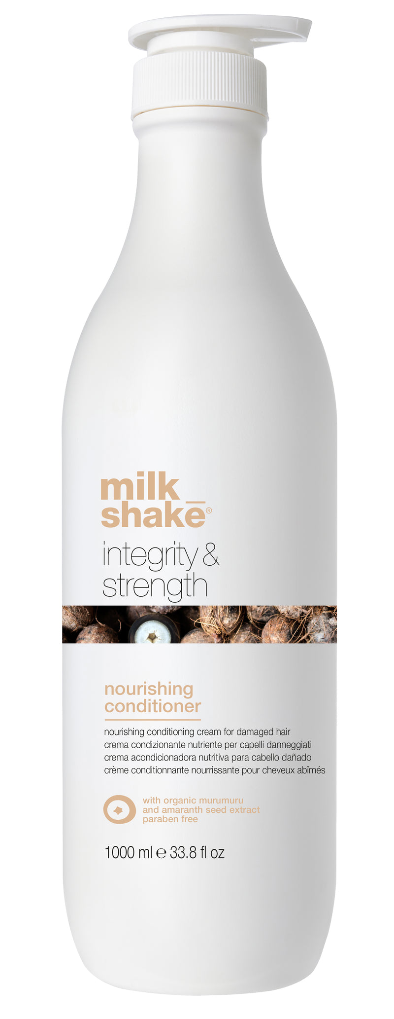 Milk_Shake Integrity & Strength Conditioner is designed to complement the shampoo by deeply nourishing and fortifying hair fibers. Its rich, restorative formula helps repair damage, improve flexibility, and prevent breakage, making hair more resilient over time. Suitable for weakened or treated hair, this conditioner enhances strength and manageability while leaving hair smooth and healthy-looking.