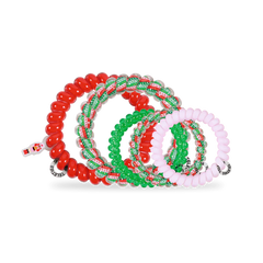 Hold your hair in place with ease and style! You Crack Me Up Mix Pack Hair Ties in Red, Green, and Pink offer a strong grip without damage, doubling as a stylish bracelet when not in use. Your new favorite hair essentials all year round.