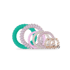 The TELETIES Christmas Tree Ornament includes 2 Tiny Hair Ties, 3 Small Hair Ties, 1 Large Hair Tie and 1 Large Nylon Hair Tie.