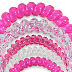 Hold your hair in place with ease and style! Flirt Alert Mix Pack Hair Ties in Pink offer a strong grip without damage, doubling as a stylish bracelet when not in use. Your new favorite hair essentials all year round.
