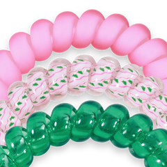 Merry Pinkmas Large Hair Ties in Pink and Green offer a strong grip without damage, doubling as a chic wrist accessory when not in use. Your new favorite hair essentials all year round.