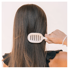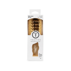 The Mini Vented Hair Brush in Tan is designed for fast, easy styling on-the-go. Its vented design supports airflow and even heat distribution, making it a great option for short hair and travel styling when using heat tools, like a mini hair dryer brush for travel.