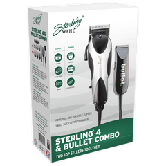 The Wahl Sterling 4/Bullet Combo offers professional-grade grooming precision with its Sterling 4 clipper and Bullet trimmer. Designed for smooth, powerful cutting and detailed edging, this combo delivers efficiency and control for flawless results. Durable and reliable, it’s ideal for barbers and stylists seeking versatile tools to achieve sharp fades and clean lines with ease.