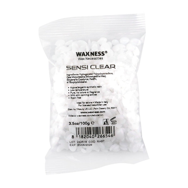 Sensi Clear is a rosin-free pure wax without any unnecessary additives. It is specially formulated for very sensitive skin, without any colors, fragrances, or allergens. Contains neuro-sensorial actives that help to mitigate the after-waxing burn sensation and stinging of the skin. As a gel consistency, it is very versatile and can be used for all areas.