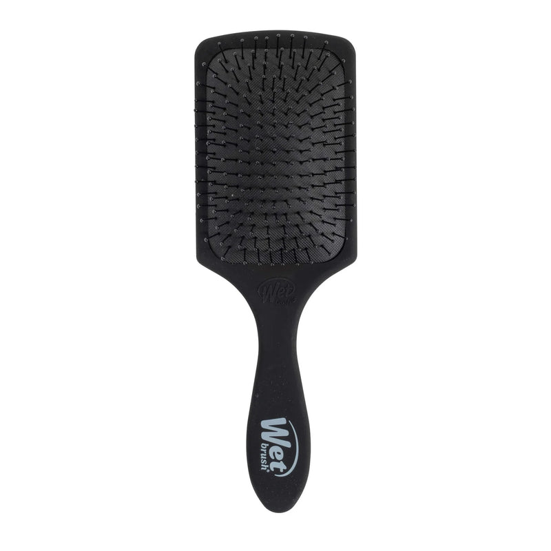 The Wet Brush Paddle Detangler in Frost Black features a spacious cushioned design with ultra-soft IntelliFlex® bristles that glide through tangles with up to 55% less breakage.