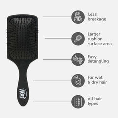 Its wider paddle shape covers more surface area, letting you brush larger sections efficiently for faster styling on wet or dry hair.